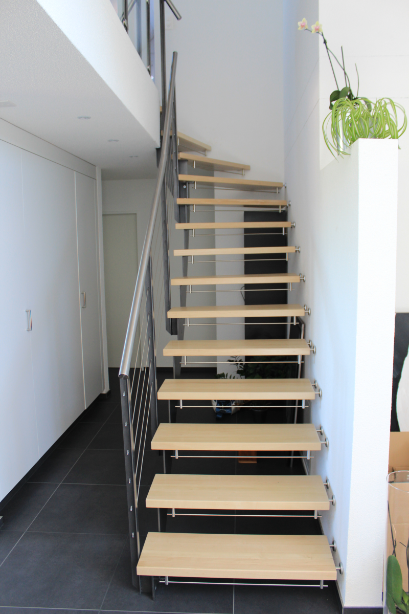 Bei der Wangentreppe sind die Stufen in die seitlichen Wangen eingestemmt. Wangentreppen sind sehr einfach in der Montage und Herstellung. Die Wangen sind die tragenden Teile und können bei entsprechender Höhe auch als Geländer dienen.